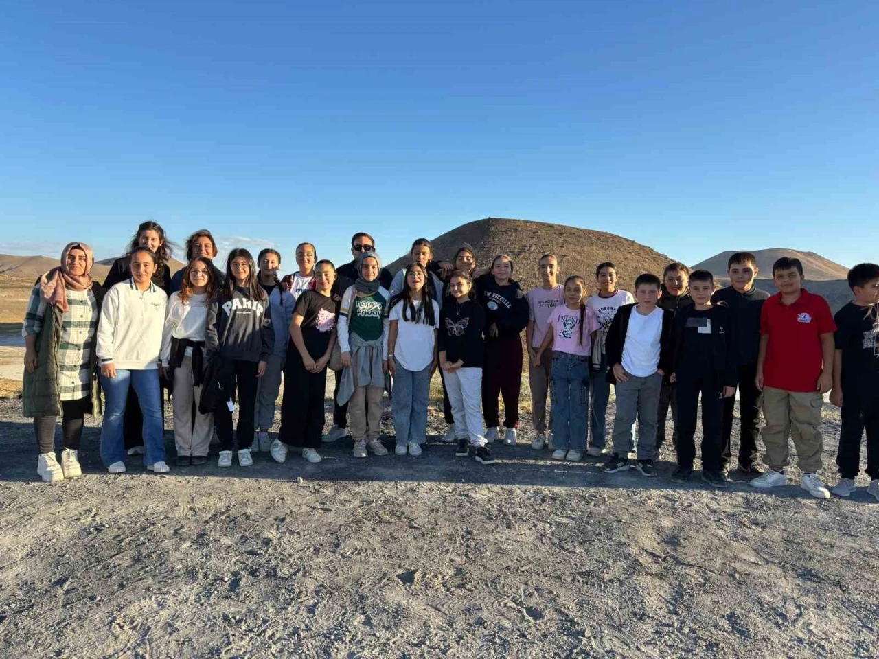 Konya’nın Karapınar ilçesinde ortaokul öğrencileri Fen Bilimleri dersi için Meke Krater Gölü’nde Ay ve Satürn gezegenini gözlemleme fırsatı buldu.