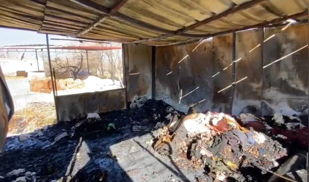 Osmaniye’de depremzede vatandaşların yaşadığı konteyner yanarak kullanılmaz hale geldi.