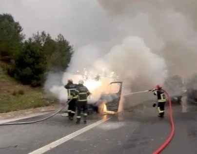 Osmaniye’nin Toprakkele ilçesinde tarım işçilerini taşıyan minibüste yangın çıktı. Alevlere müdahale eden itfaiye ekipleri, söndürme sırasında meydana gelen patlama nedeniyle zor anlar yaşadı.