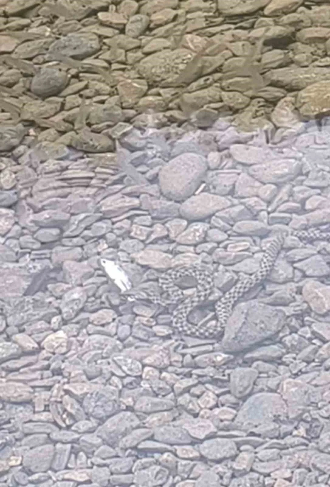 Osmaniye’nin Karaçay deresinde yılanın balık avı cep telefonu kamerasına yansıdı.