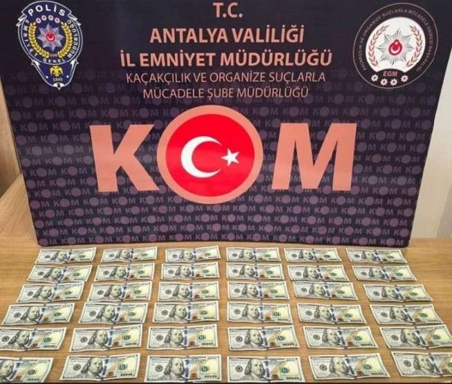 Antalya Emniyet Müdürlüğü Kaçakçılık ve Organize Suçlarla Mücadele Şube Müdürlüğü görevlilerince yapılan çalışmalarda Antalya’da otellere sahte 2 bin 600 ABD Doları vererek vatandaşları mağdur eden yabancı uyruklu şahıs, üzerinde bulunan sahte 400 ABD Doları ve 250 Euro ile başka bir ilde yakalandı.