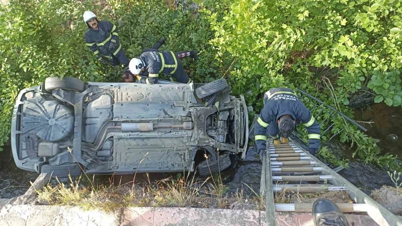 Tokat’ın Niksar ilçesinde meydana gelen trafik kazasında bir otomobil dereye düştü.