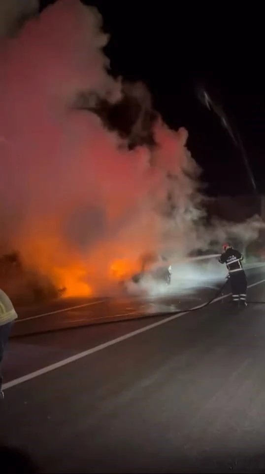 Yangın, saat 00.00 sıralarında Bursa-Ankara karayolu üzeri İnegöl’ün Şehitler mahallesi kavşağı mevkiinde meydana geldi. Bursa’dan İnegöl’e seyir halinde olan Yusuf D. (35) yönetimindeki 06 DFV 291 plakalı otomobilin motor kısmından dumanlar çıkmaya başladı. Durumu fark eden sürücü aracını yol kenarına park edip itfaiyeye haber verdi. O sırada araç alev alev yanmaya başladı. Yangın yerine gelen itfaiye ekipleri alevlere müdahale ederek kısa sürede söndürdü.