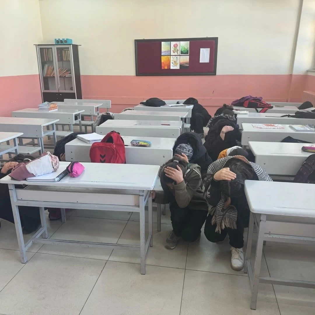 Van’ın Özalp ilçesinde "Deprem Haftası" dolayısıyla tüm okullarda deprem tatbikatı yapıldı.