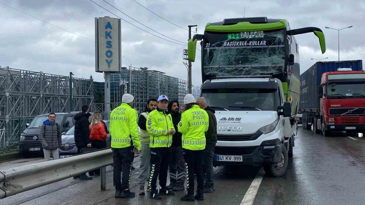 Kocaeli’de D-130 karayolunda özel halk otobüsü, tali yoldan önüne çıkan palet yüklü kamyonetle çarpıştı, kazada 3 kişi yaralandı.
