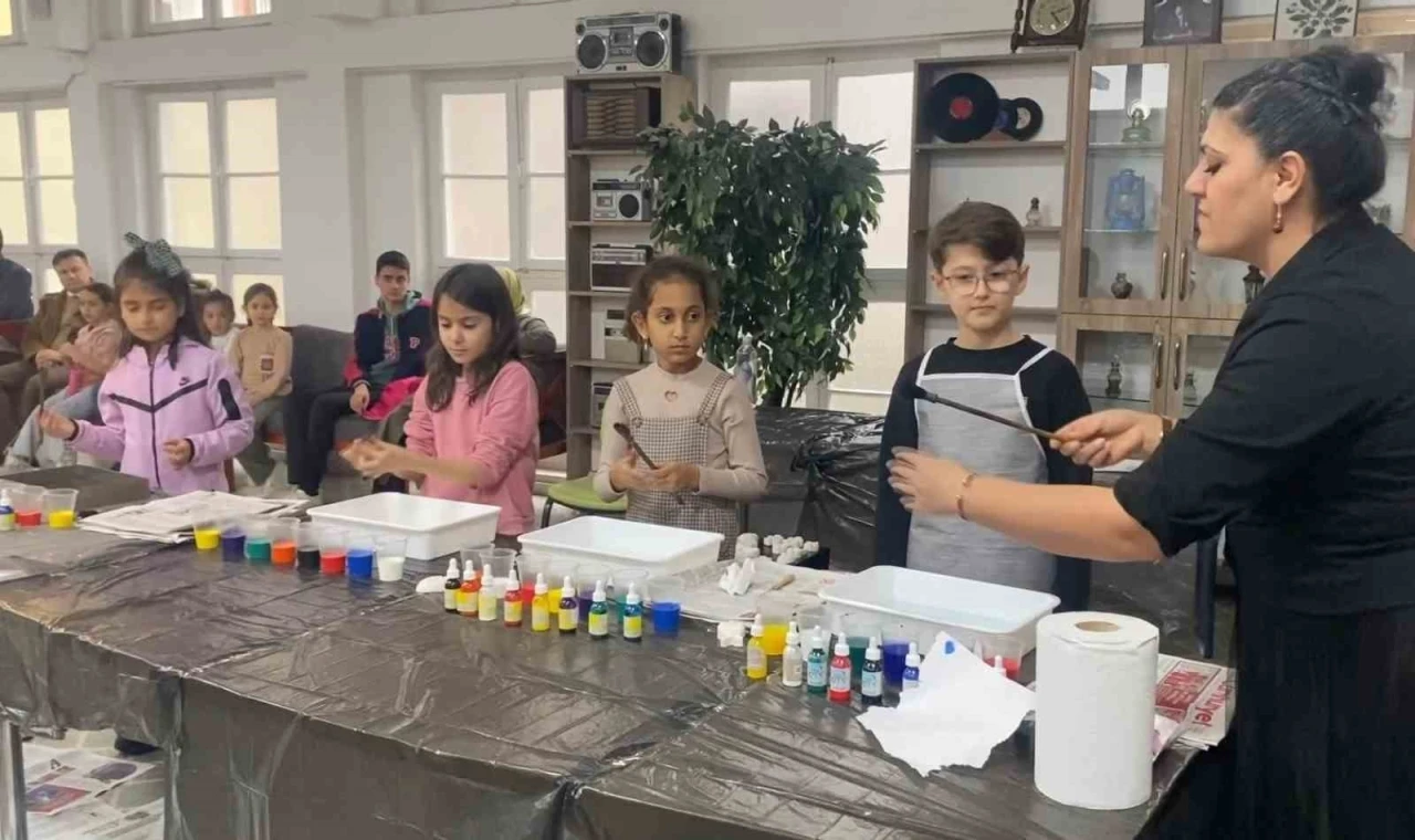 Etkinlik kapsamında Resim Öğretmeni Esma Gül Aydın, öğrencilere boyama teknikleri hakkında bilgi verdi. Öğrencilere boya ve fırça kullanımı ile ilgili rehberlik yaparak, sanat çalışmalarında onları yönlendirirken, öğrenciler, etkinlik sonunda ebru çalışmaları ve çeşitli el sanatları ile bireysel eserler ortaya koydu. "Farkındalığı ilkokul çağına indirdik"