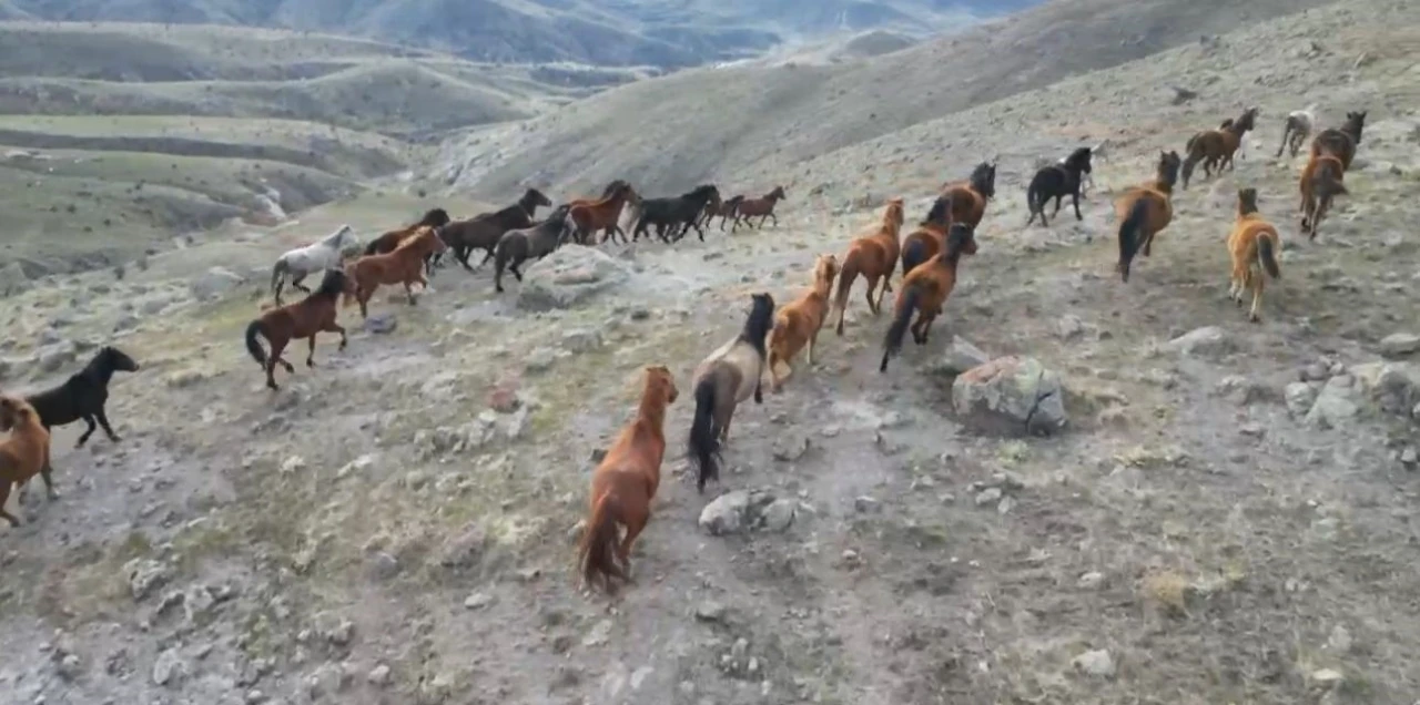 Sevimlilikleri ile birlikte ürkeklikleri ile bilinen yılkı atları bu defa yiyecek ararken görüntülendi. Hava sıcaklıklarının eksi 10 derecelere kadar düştüğü Emirdağ ilçesine bağlı Yellibel yaylasında yiyecek aramak için köylere kadar inen yılkı atları dron ile havadan görüntülendi. Sürü halinde dolaştıkları gözlenen atların dronu fark edince kaçmaları ise ilginç bir o kadarda güzel görüntüler oluşturdu.