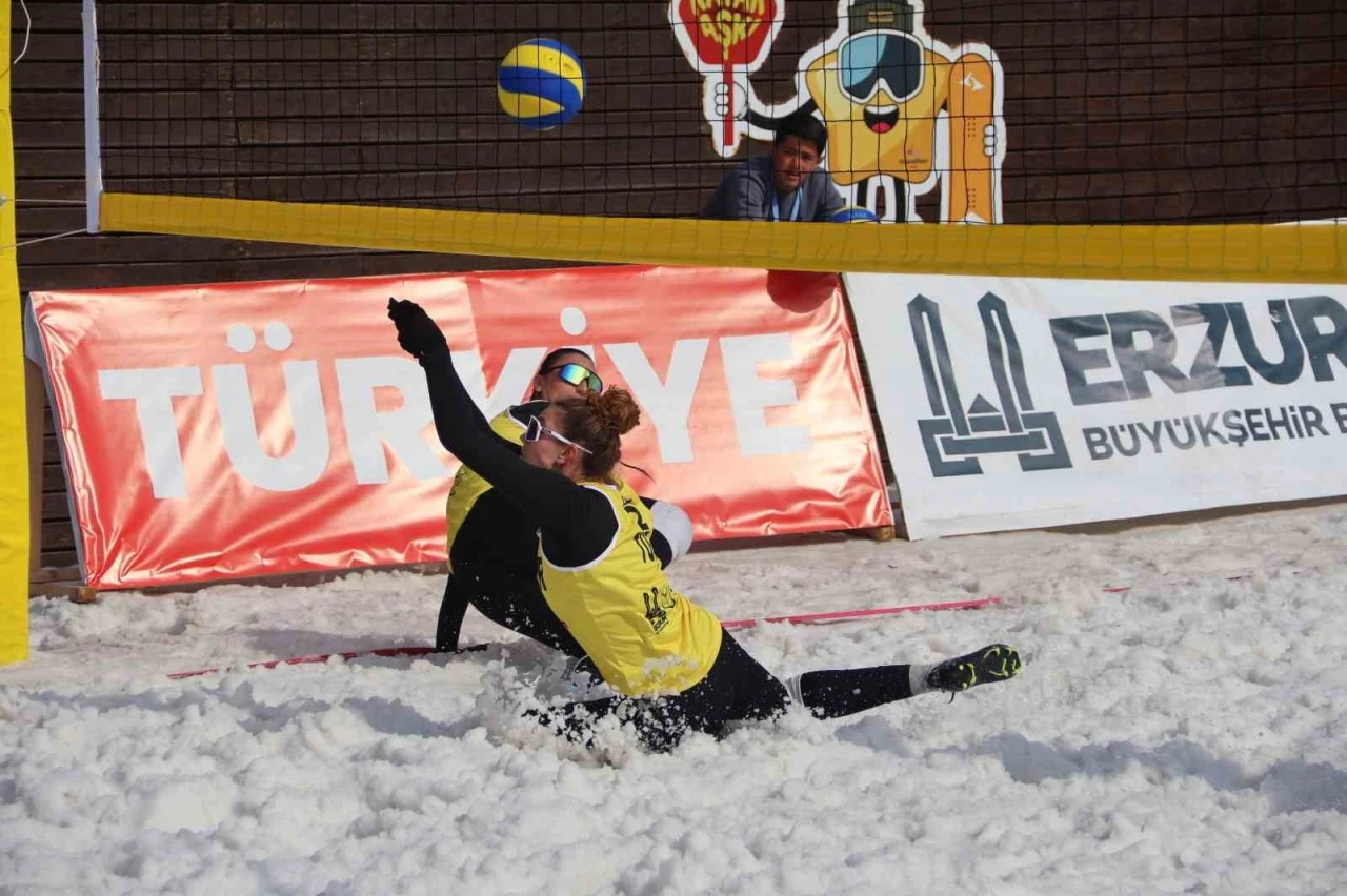 Palandöken Kayak Merkezi’nde kar voleybolu coşkusu yaşandı.