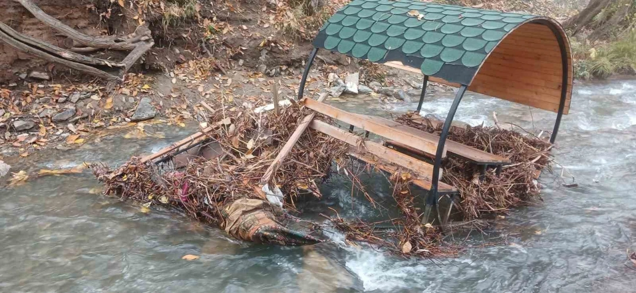 Elazığ’ın Palu ilçesinde etkili olan sağanak yağışların ardından Teke Deresi’nde su seviyesi hızla yükseldi. Taşkınla birlikte hem kıyıya hem de yaz aylarında serinlemek amacıyla derenin içerisine konulan banklar, sulara kapılarak sürüklendi. Bazı bankların kullanılamaz hale geldiği, bir kısmının ise dere içerisinde kaybolduğu öğrenildi. Vatandaşlar, piknik sezonunun sona ermesiyle birlikte hem kıyıdaki hem de suyun içine yerleştirilen bankların zamanında kaldırılması gerektiğini belirterek yetkililere çağrıda bulundu.