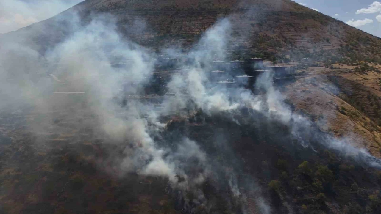 Kayseri’nin Talas ilçesindeki ormanlık alanda çıkan yangına ekiplerin müdahalesi sürüyor. Patlıcan közlenirken dağılan alevler nedeniyle çıktığı belirlenen yangının villalara ulaşmaması için ekipler yoğun çaba sarf ediyor.