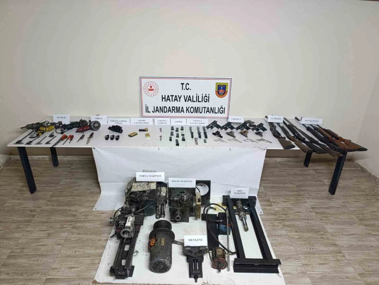 Ayrıca silah imalinde kullanıldığı değerlendirilen; 1 adet torna, 1 adet freze,1 adet torna pres, 2 adet spiral, 2 adet matkap makinası ile namlu, gövde ve kapak takımı yapımında kullanılan malzemeler ele geçirildi.