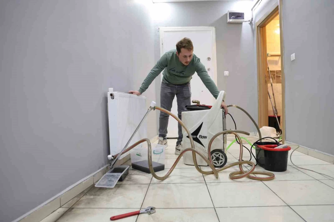 Temizlik yapılmadığı takdirde yaşanan sorunlara değinen Yılmaz, "Gittiğimiz bazı yerlerde, petekler ısınmıyor, ısınmamaya başlıyor. Artık o peteklerin içerisinde bulunan pislik, peteklerin girişleri ve çıkışlarını tıkıyor. Petek tıkandığı için çalışmıyor. Tekrardan o peteği sökmek zorunda kalıyoruz. Biz şu anda petek temizliğini sadece duru suyla yapıyoruz. O ilaç dedikleri şey bir asitten ibaret. O asit hem peteklere hem de kombiye zarar verdiği için ilaçla önermiyoruz. Biz suyla yapıyoruz. Biz bu noktada şart olarak görüyoruz. İki senede bir yapılmasını öneriyoruz. Yapılırsa faydasını görürler. Yapmazlarsa da dediğimiz gibi bir tıkanma sorunu yaşanır. Daha hızlı ısınırlar, daha fazla fatura öderler. İşlem yaklaşık olarak 40 dakika sürüyor. Evlerde işlemi banyodan yapıyoruz. Banyodaki peteğe, basınçlı makinayı bağlıyoruz. Oradan tüm peteklere tek tek suyu veriyoruz. Tüm petekleri tek tek temizliyoruz. Ondan sonra aynı şekilde kombiyi, kombinin filtrelerini temizliyoruz. Yani herhangi bir el kirletme olayı, petek sökme olayı olmadan tüm petekleri tek tek, en verimli şekilde temizliyoruz. Kış sezonu olduğu için yoğunluk var" diye konuştu.