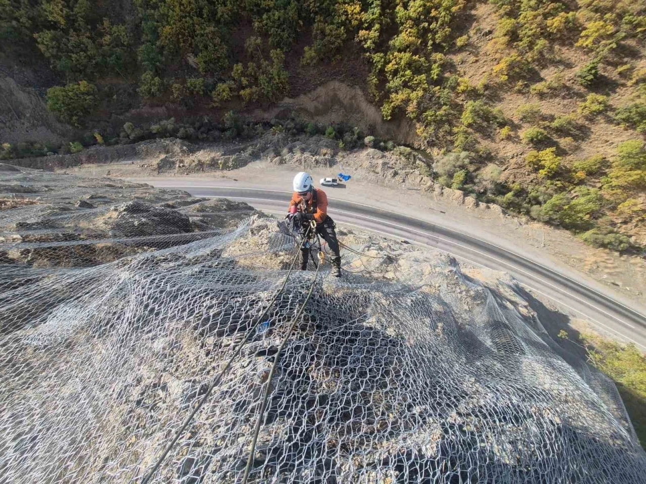 Tunceli-Pülümür karayolunun 2 ile 5’inci kilometreleri arasında, taş düşmelerinin yoğun olarak yaşandığı bölgede yürütülen taş düşmesi önleme çalışmaları tamamlandı. Karayolları ekipleri tarafından gerçekleştirilen çalışmalar kapsamında, 28 bin metrekarelik alana çelik ağ kaplama yapılarak olası taş düşme riskleri en aza indirildi. Bununla birlikte, çelik ağ dışında tehlike arz eden askıdaki taşlar da kontrollü bir şekilde düşürülerek yolda seyir halinde olan vatandaşların güvenliği sağlandı.