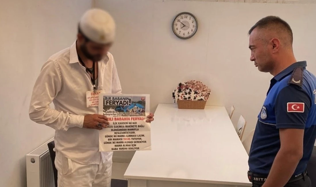 Şahsın üzerinde yapılan aramada, vatandaşlardan topladığı değerlendirilen 743 TL’ye kamu adına el konuldu. Ayrıca şahsın elinde bulunan pankartta, iki kızının ilik kanseri olduğu ve mamayla beslendikleri yönünde ifadeler yer aldığı görüldü. Ancak yapılan incelemelerde, bu iddiaları doğrulayan herhangi bir resmi belge ya da sağlık raporuna ulaşılamadı.