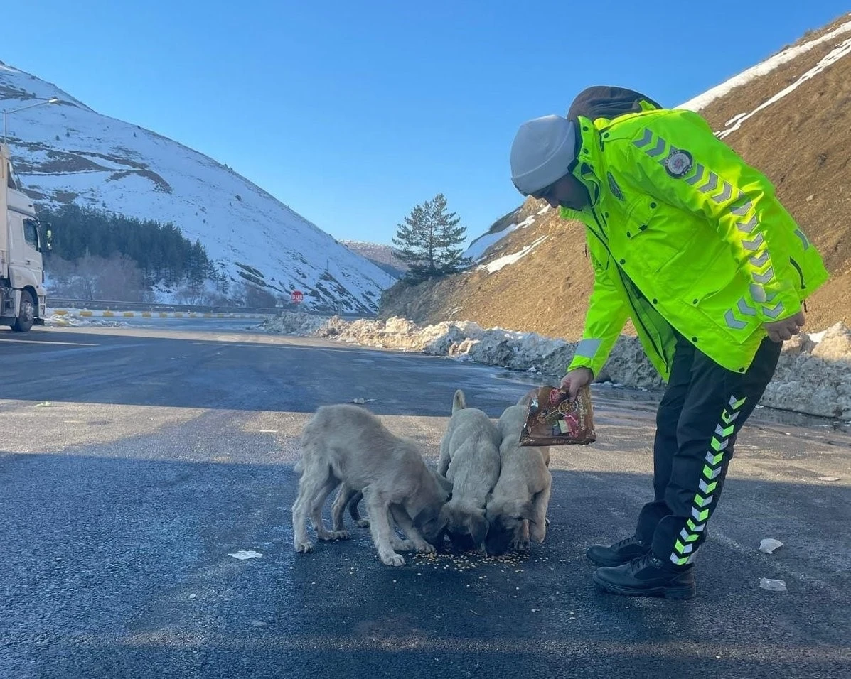 Erzincan İl Emniyet Müdürlüğü Refahiye Bölge Trafik Denetleme İstasyon Amirliği ekipleri, soğuk kış şartları nedeniyle doğada yiyecek bulmakta zorlanan sokak hayvanlarını unutmadı. Erzincan - Sivas karayolu Kızıldağ ve Sakaltutan güzergâhlarında yol kontrolleri esnasında ekipler karşılaştıkları sokak hayvanlarını mama ile besledi.