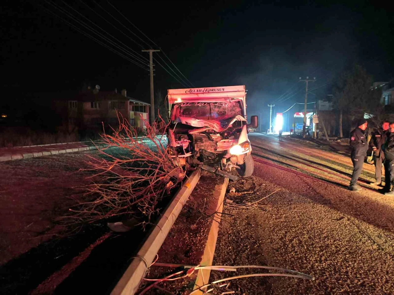 Afyonkarahisar’da kontrolden çıkan kamyonet orta refüje çıkarak ağaçları devirip, elektrik direğine çarparak durabildi. Kazada şans eseri ölen ya da yaralanan olmadı.
