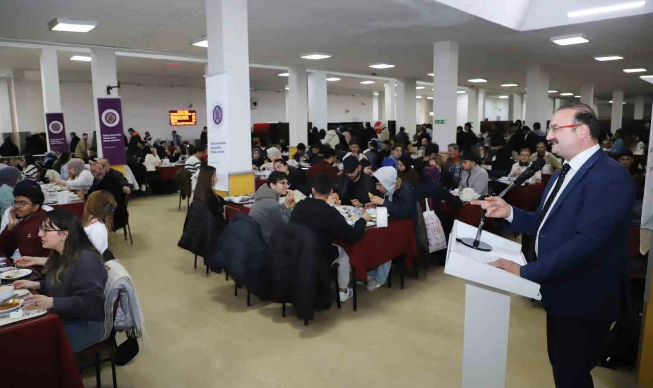 Kuran-ı Kerim tilaveti ile başlayan program, ezanın okunmasıyla birlikte dualar eşliğinde açılan oruçlarla devam etti. İftar sonrasında konuşan Rektör Hacımüftüoğlu, Ramazan ayının birlik ve beraberliği pekiştiren manevi atmosferine vurgu yaparak şu ifadeleri kullandı: "Ramazan, paylaşmanın ve dayanışmanın en güzel örneklerini sergilememize vesile olan mübarek bir aydır. Bugün, siz değerli öğrencilerimizle aynı sofrayı paylaşmaktan büyük bir mutluluk duyuyorum. Sizlerin akademik, sosyal ve kültürel gelişimi için tüm imkanlarımızı seferber ediyoruz."