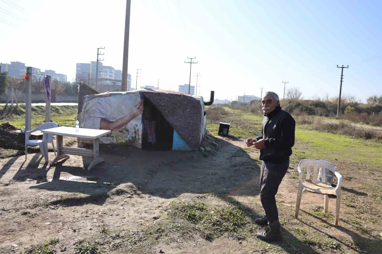 Aydın’da yaşayan 66 yaşındaki Ziya Şaşkın, Ata Mahallesi’ndeki lüks rezidanslar arasında çay kenarında kurduğu derme çatma bir çadırda zorlu bir yaşam mücadelesi veriyor. Elektrik ve suyu olmayan, banyo ve tuvaleti bulunmayan çadırda kışın yaşamanın daha da zor olduğunu belirten Şaşkın, ihtiyarlıkta rahat etmek isteyenlerin gençken bilinçli çalışmasını tavsiye etti. Gençlik yıllarında çalıştığını ancak çalışırken sigortalı işte çalışmayı hiç akıl edemediğini belirten Ziya Şaşkın, “Gençken her şeye elin erip gücün yetiyor. Bitmez sanılan gençlik yılları da göz açıp kapayıncaya kadar geçiyor. Gençken çeşitli işlerde çalışıp bir şekilde geçinip gittik. Ancak belli bir süre sonra eşimi ve çocuğumu kısa aralıklarla kaybettim. Zamanında sigortalı işte çalışmadığım için şu anda başımı sokacak bir mekanım olmadığı gibi ev tutsam kirasını ödeyebilecek gücüm yok. Bu nedenle kanal kenarında boş bulduğum bir alanda kurduğum çadırda yaşamak zorunda kalıyorum” diyerek gençlerin ihtiyarlıkta rahat edebilmeleri için gençlik yıllarının kıymetini bilmesini istedi. “Büyükşehir Belediyesi yemeğimi veriyor”