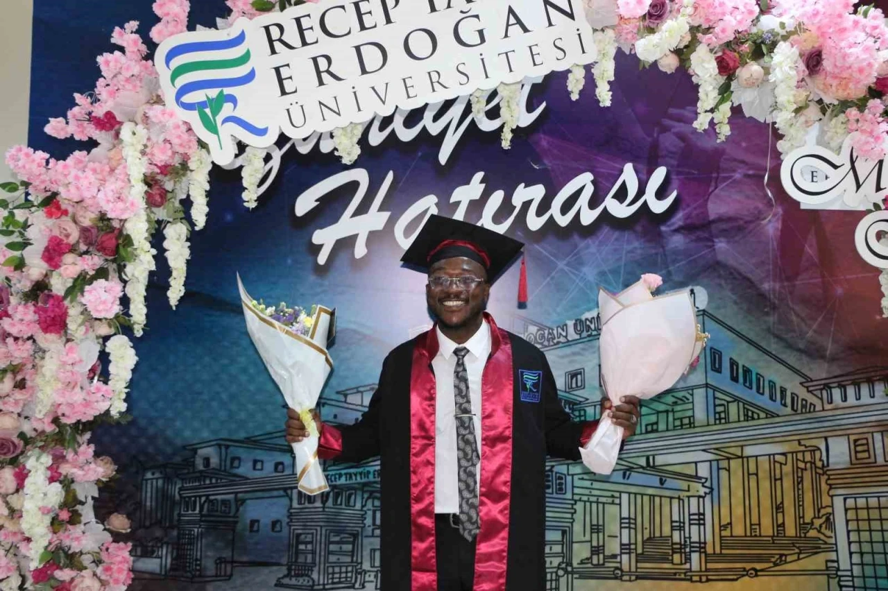 Üniversite eğitimi için 7 yıl önce geldiği Rize’de yöre kültürünü öğrenerek sosyal medyada fenomen olan Ganalı genç mezun oldu.