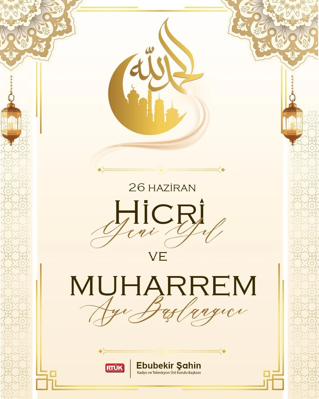 RTÜK Başkanı Ebubekir Şahin sosyal medya hesabından yaptığı paylaşımda, yeni Hicri Yılın Türk milletine huzur, İslam dünyasına birlik ve dirlik, başta Gazze olmak üzere zulme direnen tüm mazlum coğrafyalara barış, adalet ve umut getirmesini gönülden niyaz ettiğini belirterek, "Muharrem ayının dayanışma ruhunu yüreklerimizde hissederek; adaletin, merhametin ve kardeşliğin derinliğini kavrayabildiğimiz bir yıl olmasını temenni ediyorum" ifadelerine yer verdi.