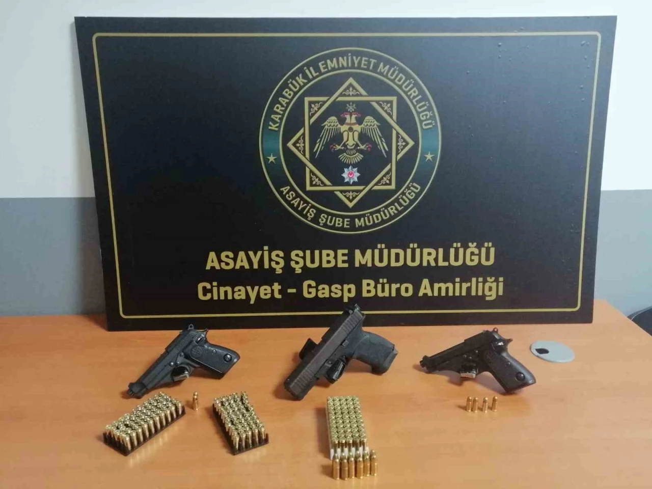 İl merkezi ve Safranbolu ilçesinde düzenlenen operasyonlarda, 7.65 mm çapında Baretta marka ruhsatsız tabanca, Pietro Beretta marka ruhsatsız tabanca, iki adet Glock marka ruhsatsız tabanca ile 292 adet fişek ve 2 adet şarjör ele geçirildi.