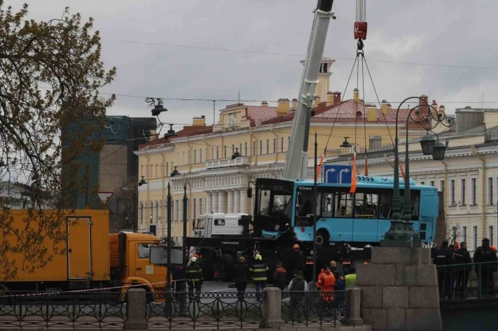 Rusya’nın St. Petersburg kentinde içinde yaklaşık 20 yolcunun bulunduğu otobüs, sürücünün direksiyon kontrolünü kaybetmesi sonucu bir araca çarpıp Potseluev Köprüsü üzerinden Moika Nehri’ne uçmuştu. Dün yaşanan olayda otobüs batmaması için halatlarla köprüye bağlanırken olayda hayatını kaybedenlerin sayısının 7’ye yükseldiği açıklandı. Aracın sürecinin gözaltına alındığı kaydedilirken olaya ilişkin soruşturma başlatıldığı aktarıldı. Aracın nehre düşmesinin ardından başlatılan kurtarma çalışmalarında bazı yolcular otobüsün üst kısmındaki havalandırmadan çıkarıldı. Nehre düşen otobüs ise ağır makinelerle yürütülen çalışmalar sonucu nehirden çıkarıldı.