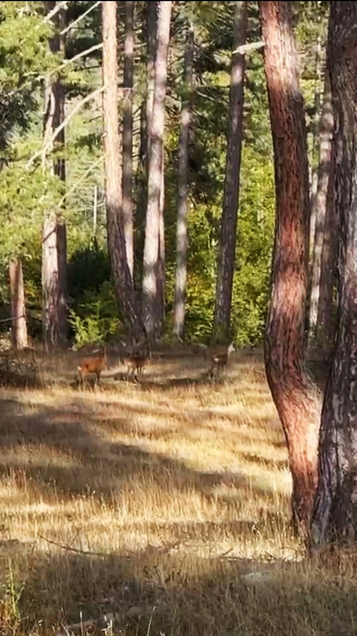 Karabük’ün Safranbolu ilçesinde anne karacanın 2 yavrusuyla birlikte ormanda gezintisi cep telefonu kamerasına yansıdı.