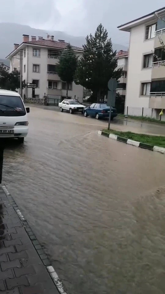 Karabük’te etkili olan sağanak sonrası yollar göle dönerken bazı iş yerlerini su bastı.