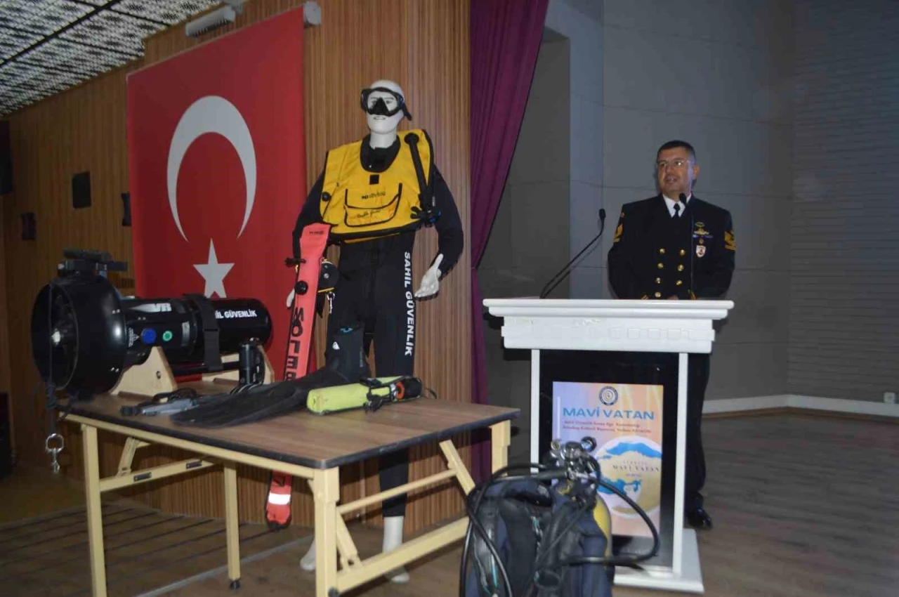Sahil Güvenlik Kuzey Ege Komutanlığı tarafından gerçekleştirilen eğitimde, öğrencilere "Mavi Vatan" kavramı, denizlerin önemi, Birleşmiş Milletler Deniz Hukuku Sözleşmesi, Çevre denizlerde mevcut durum ve Türkiye’nin deniz yetki alanları ve denizcilik hakları konularında kapsamlı bilgiler aktarıldı.