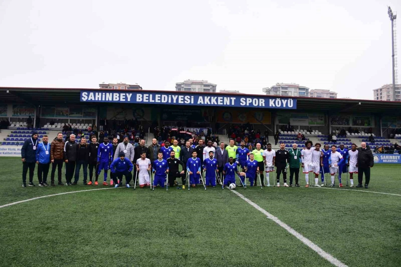 Şahinbey Belediye Spor Kulübü Ampute Futbol Takımı, kendi evinde Pendik Belediyesi Bedensel Engelliler Spor Kulübü Ampute Futbol Takımı’nı ağırladı. İki takım yöneticileri karşılaşma öncesinde dostluk rüzgârı estirirken, Şahinbey Belediye Spor Kulüp Başkanı Cuma Güzel, Pendik Belediyesi Bedensel Engelliler Spor Kulübü’ne çiçek vererek ligde başarılar diledi. Karşılaşmaya hızlı başlayan Şahinbey Belediye Spor Ampute Futbol Takımı, karşılaşmanın ilk yarısını 5-0 önde tamamlarken ikinci yarıda da rakip filelere 3 gol daha atarak karşılaşmayı 8-2 kazanmasını bildi. Zorlu mücadelede üstün bir performans sergileyen Şahinbey ekibi, sahadan galibiyetle ayrılarak taraftarlarını sevindirdi. “Her iki takımı da tebrik ediyorum”