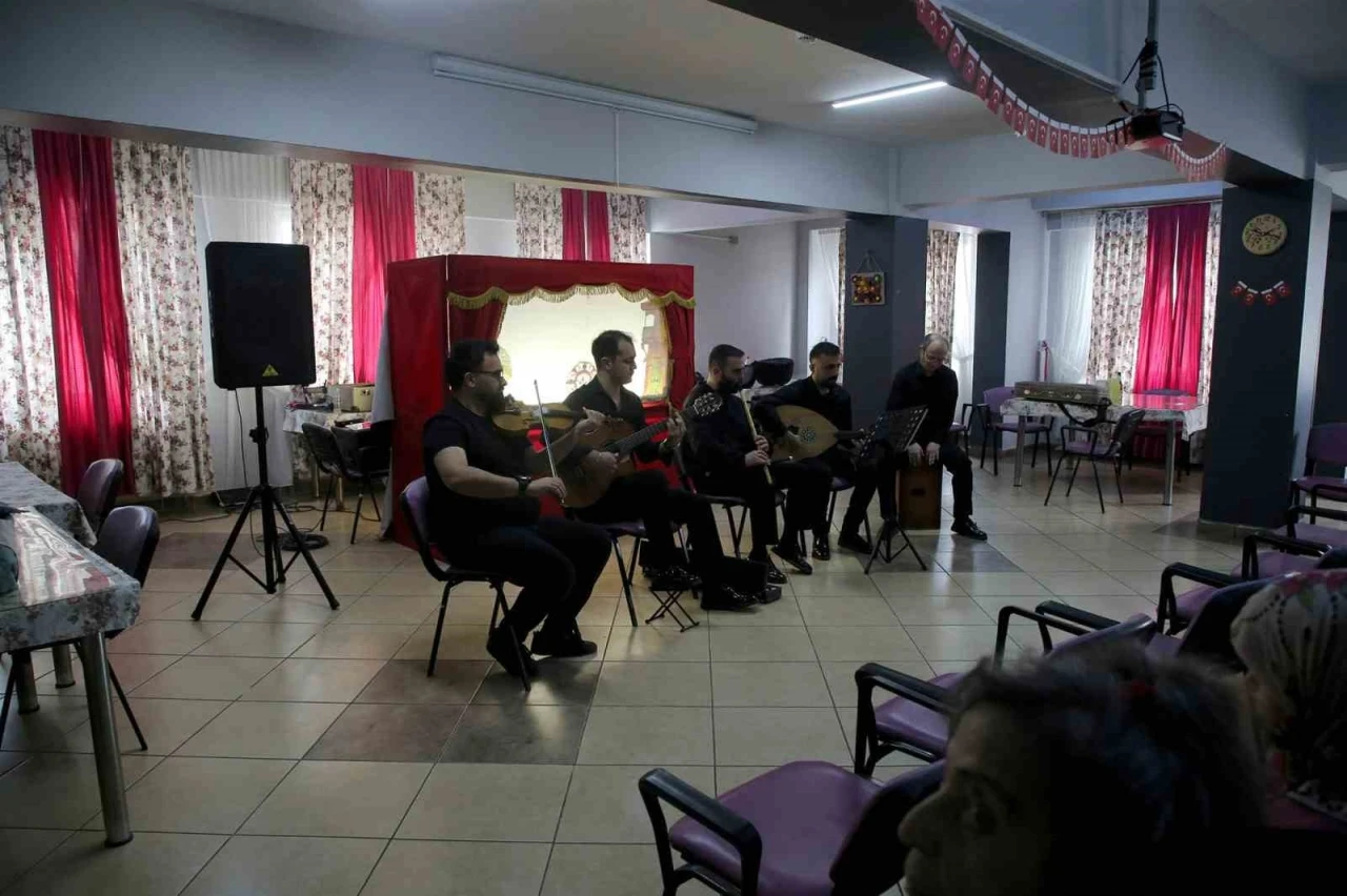 Konserin yanı sıra gölge oyunu gösterisiyle geçmişle bugünü buluşturan anlamlı ziyarette eli öpülesi yaşlılara karanfiller hediye edildi.