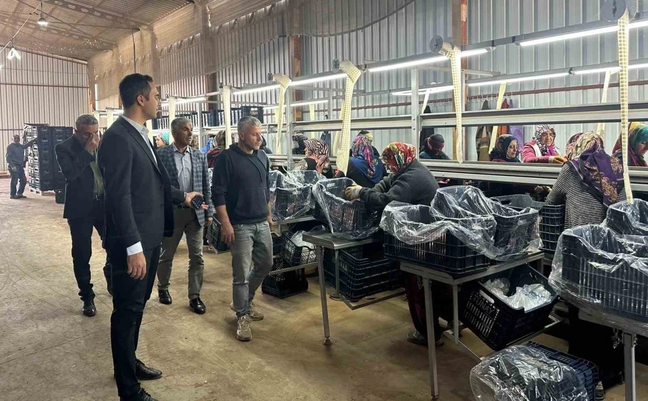 Göltarla Köyünde bulunan soğuk hava depolarında çalışmaları yerinde inceleyen Samsat Kaymakamı Yaşar Artar, yetkililerden bilgiler alarak, depolarda incelemelerde bulundu.