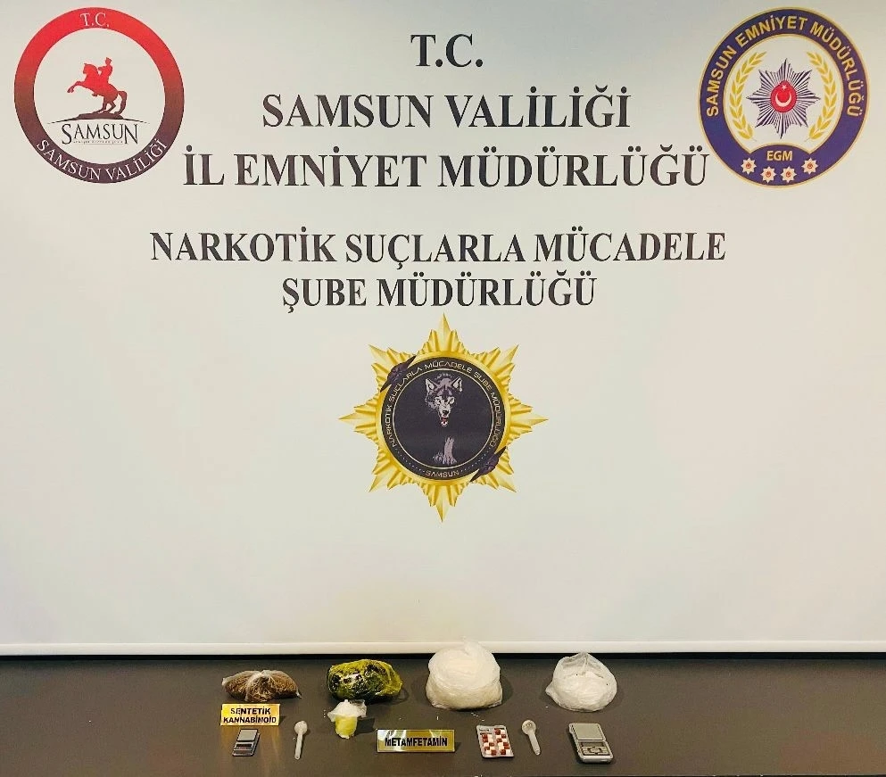 Edinilen bilgiye göre, Samsun Emniyet Müdürlüğü Narkotik Suçlarla Mücadele ve İstihbarat Şube Müdürlüğü ekiplerince Atakum’da bir ikamette yapılan operasyonda, G.G. (36) ve A.P. (42) isimli şahıslara ait adreste arama yapıldı. Yapılan aramada, 1 kilo 250 gram metamfetamin 50 gram bonzai (sentetik kannabinoid), 11 adet sentetik ecza, 2 adet hassas terazi ve 2 adet uyuşturucu kullanım aparatı ele geçirildi. Olayla ilgili G.G. ve A.P. hakkında adli işlem başlatıldı. Soruşturma devam ediyor.