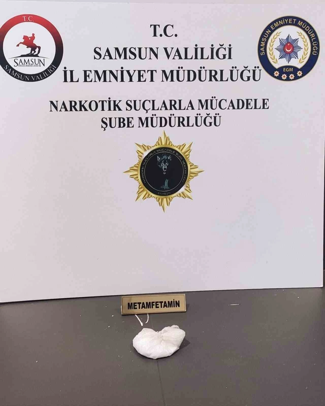 Edinilen bilgiye göre, Samsun Emniyet Müdürlüğü Narkotik Suçlarla Mücadele Şube Müdürlüğü ekipleri, İlkadım ilçesinde B.Ç.’nin (36) ikametinde arama yaptı. Yapılan aramada, 77,60 gram metamfetamin ele geçirildi. Olayla ilgili B.Ç. gözaltına alındı. Soruşturma devam ediyor.