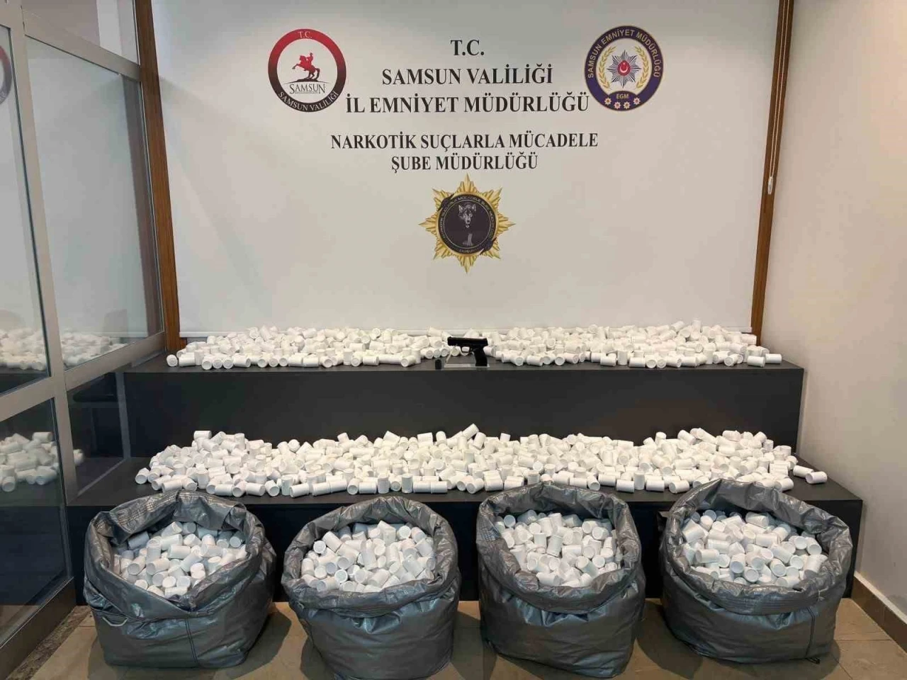 Samsun’da polis, dijital izleme yoluyla yürüttüğü operasyonda büyük bir sentetik ecza deposunu ortaya çıkardı ve toplamda 171 bin 824 adet sentetik ecza ele geçirdi. Operasyon kapsamında 5 kişi gözaltına alındı.