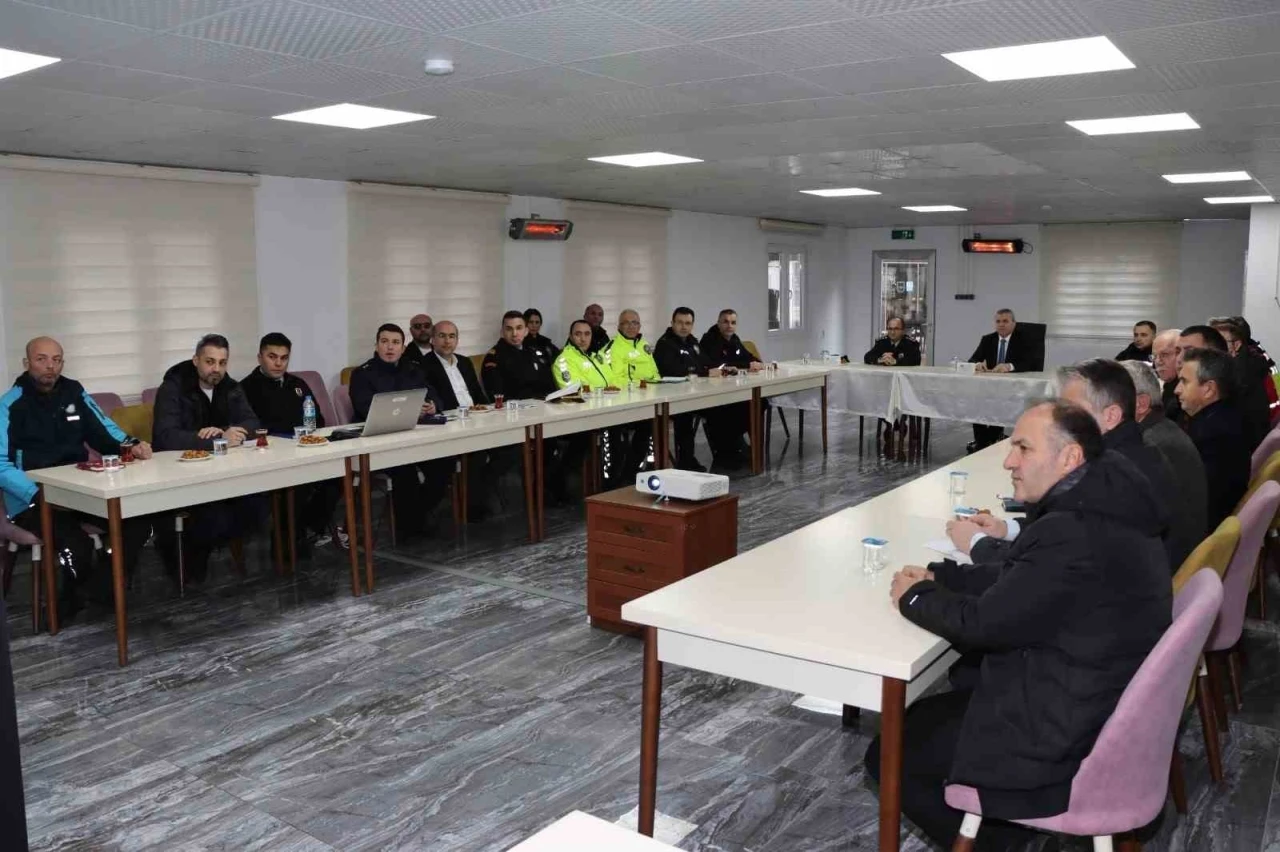 Toplantıda, afet öncesi, sırası ve sonrasında tahliye öncelikleri, tahliye yolları ve tahliye edilecek bölgeleri tespit etme, planlama ve uygulama, acil durum alanlarını belirleme ve alanların kullanıma uygunluğunu kontrol etme, afet bölgesindeki halka tahliye yapılacağının duyurulmasını sağlama, tahliye edilenlerin afet bölgesinden güvenli bölgelere taşınarak yerleştirilmesini sağlama, taşınabilir milli servet, kıymetli evrak, eşyalar ve gerektiğinde hayvan tahliyesi yapma konularındaki görev ve sorumluluklara yönelik eğitim verildi.