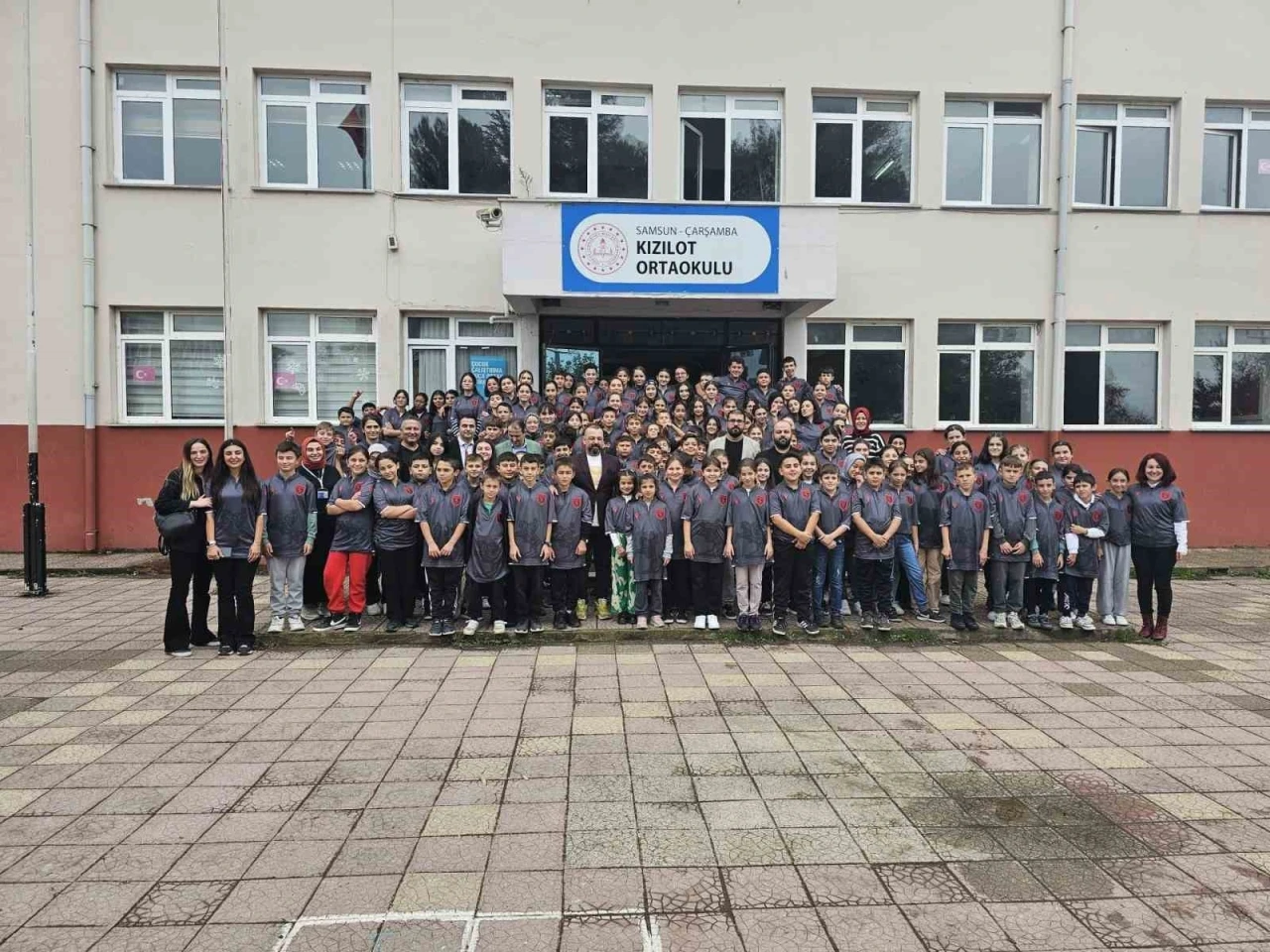 Samsunspor’un efsane kaptanı ve başkanı merhum Emin Kar’ın anısına ortaokul öğrencilerine Samsunspor forması hediye edildi.