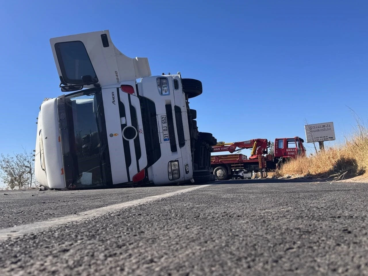 Şanlıurfa’nın Suruç ilçesinde tekstil hammaddesi yüklü tırın devrilmesi sonucu D-400 karayolu trafiğe geçici olarak kapatıldı.