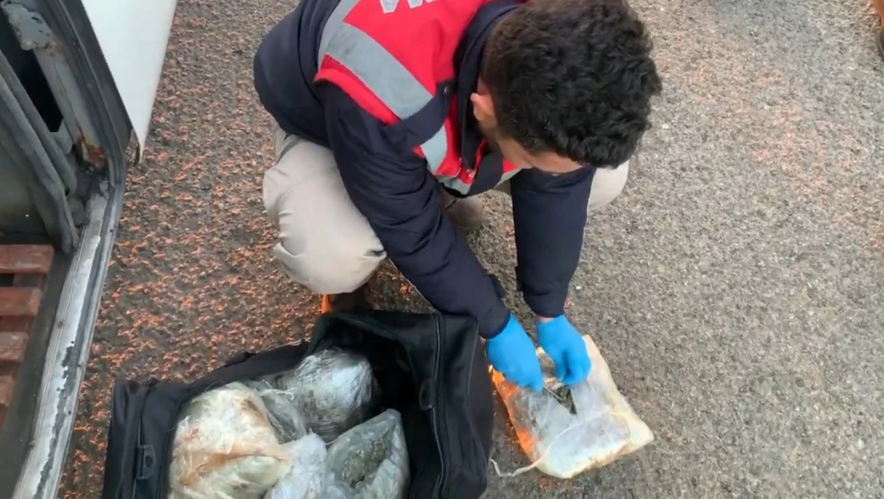 Şanlıurfa İl Jandarma Komutanlığı ekipleri, şüphe üzerine durdurulan bir şehirlerarası yolcu otobüsünde arama yaptı. Narkotik jandarma köpeği ile yapılan aramada, 14 Kilo 661 gram esrar maddesi ile 215 gram kenevir tohumu ele geçirildi. 2 şüpheli gözaltına alındı.