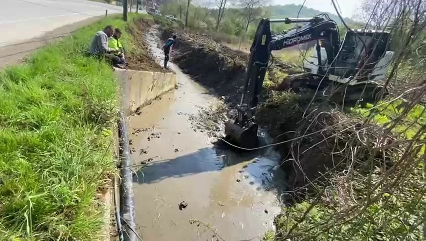 Ekipler, 10 Mart’ta minibüs ile otomobilin kafa kafaya çarpıştığı kazada, otomobilin motorunun savurularak kanala düşmesi neticesinde akan yakıtın ve motor yağının sızıntıya sebep olabileceğini ön görüyor. Ekipler, bugün sabah saatlerinde kazanın olduğu yere gelerek iş makinası ile yaptığı dere yatağı ve menfez temizliği sonrası Sapanca Gölü’ne ulaşan maddeyi temizledi.