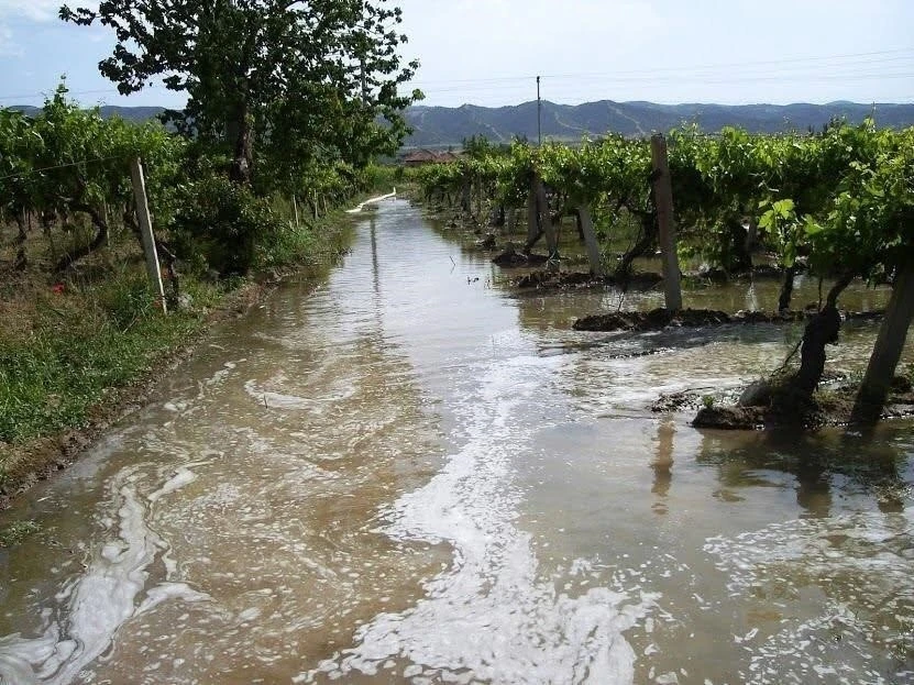 Bağlarda sezonun ilk sulaması geleneksel yöntem olan ’Vahşi sulama’ ile yapıldı. Üreticiler, bu yöntemin yalnızca bir kez uygulandığını, ardından ise damlama sulama sistemine geçilerek sezon boyunca bu yöntemle sulama yapıldığını belirtti.