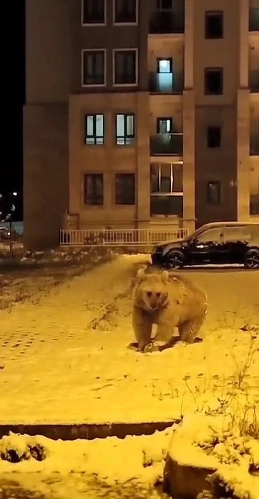 Kars’ın Sarıkamış ilçesinde bozayılar kış uykusuna yatmadı. Kar yağışı ve soğuğun etkili olduğu ilçede kış uykusuna yatmayan bozayılar toplu konutlara kadar geldi. Burada belediyeye ait çöp konteynerlerini devirerek yiyecek arayan ayılar, bir vatandaş tarafından cep telefonuyla anbean kaydedildi.