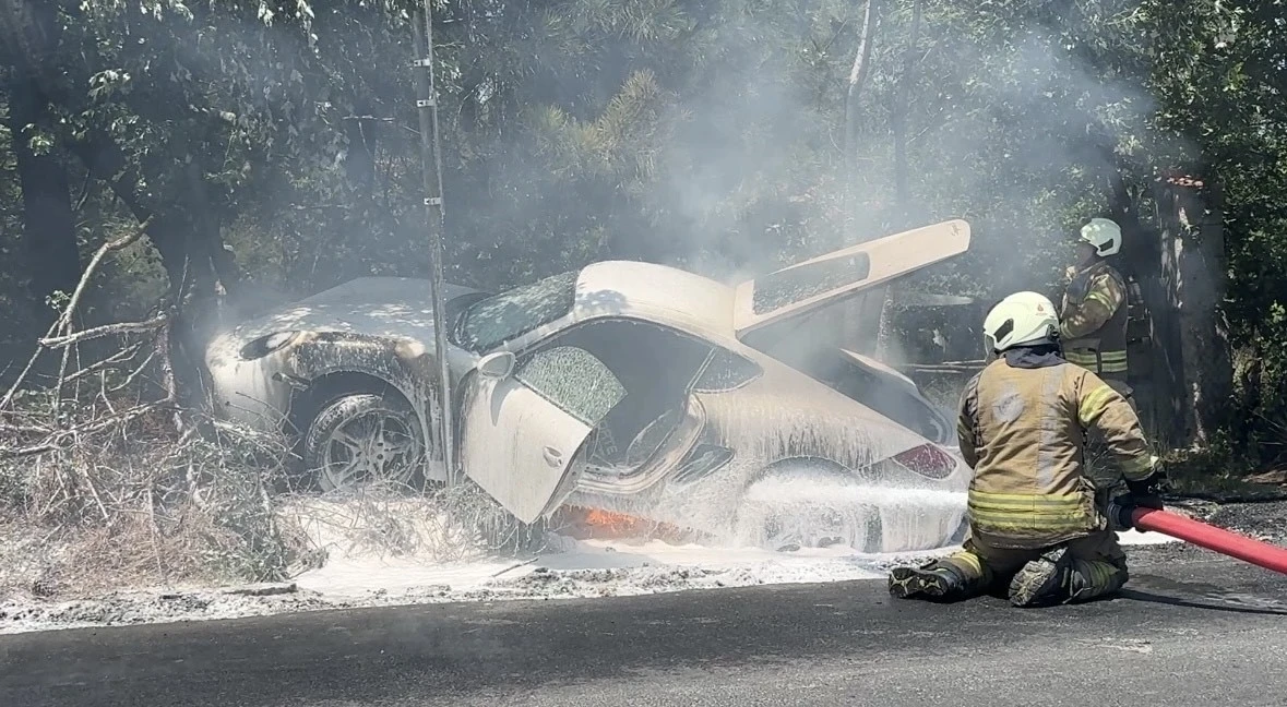 Sarıyer’de, sürücüsünün direksiyon hakimiyetini kaybettiği Porsche marka otomobil, yeşil alana savruldu. Kaza yapan sürücü araçtan çıktıktan kısa süre sonra lüks otomobil alev aldı. Yangın itfaiye ekipleri tarafından söndürüldü.