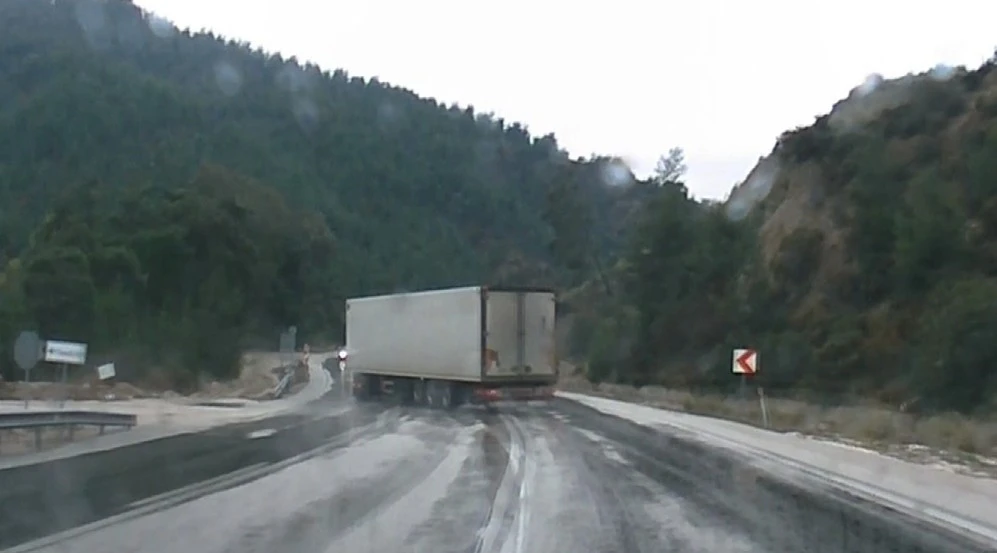 Olay, geçtiğimiz günlerde Burdur’un Ağlasun ilçesine bağlı Antalya–Isparta kara yolunun Isparta istikameti Aşağı Yumrutaş mevkiinde meydana geldi. Edinilen bilgilere göre, yağmurun etkisiyle kayganlaşan yolda kontrolden çıkan bir tır ve dorsesi bir anda savrularak yolu kapladı. Tır sürücüsünün yaptığı manevra sayesinde araç yeniden kontrol altına alınırken, yaşanan tehlikeli anlar tırın arkasından gelen bir otomobilin araç kamerasına saniye saniye yansıdı. Görüntülerde, çift şeritli yolda karşı yönden gelen araçların da bulunduğu ve muhtemel bir facianın kıl payı atlatıldığı görüldü. Olayda herhangi bir yaralanma yaşanmazken, yaşananlar sürücüleri korkuttu. Dereboğazı yolu tehlike saçıyor vatandaşlar uyarıyor