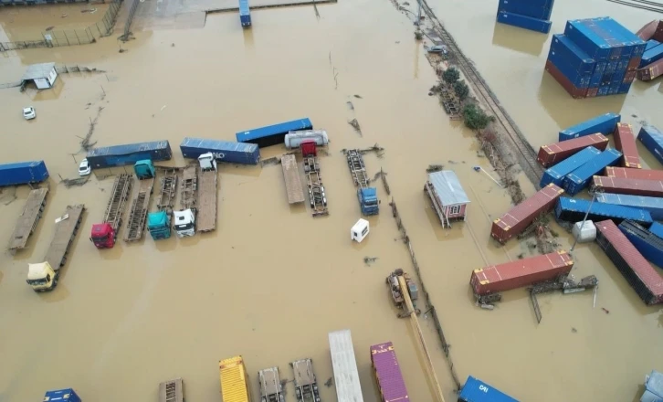 İstanbul’da etkili olan sağanak yağışta sel sularının bastığı İstanbul Halkalı Gümrüğü havadan görüntülendi.
