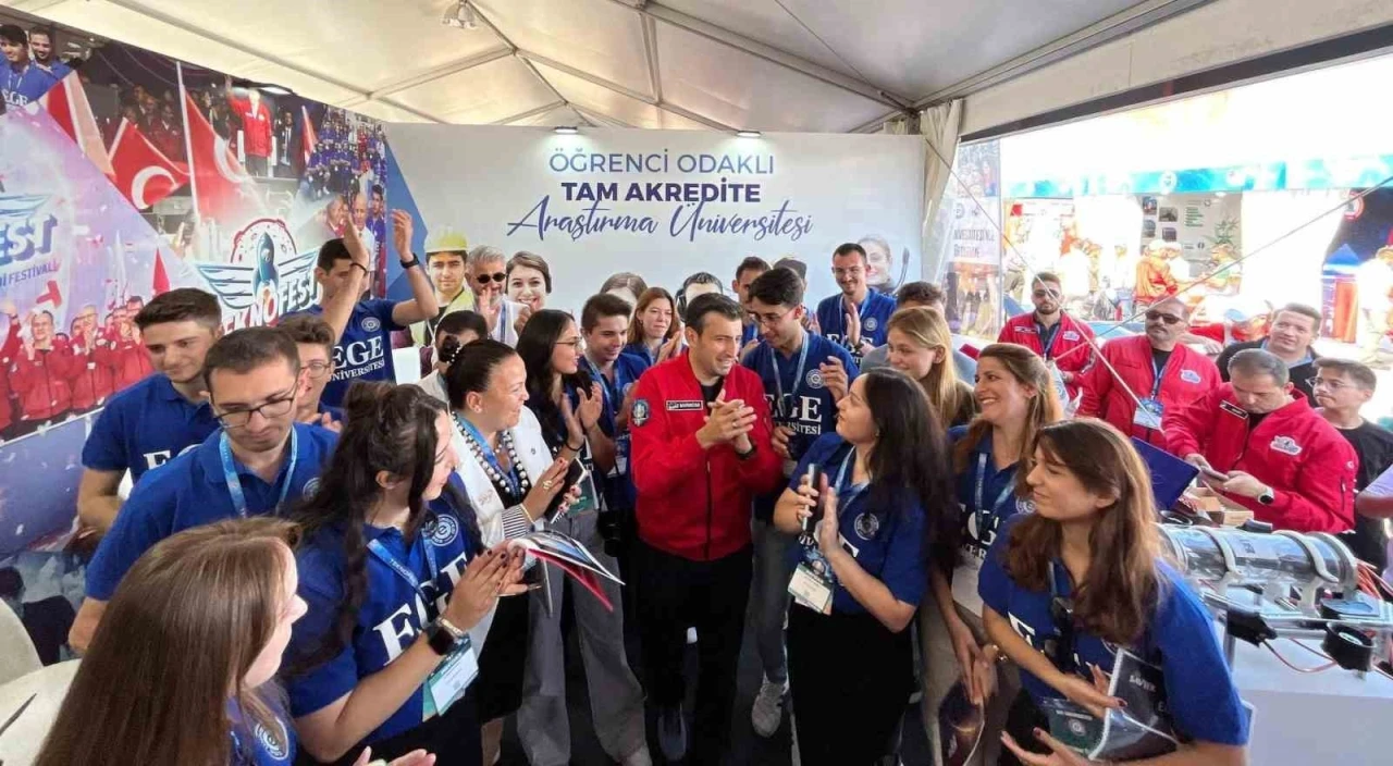 TEKNOFEST Yönetim Kurulu ve Türkiye Teknoloji Takımı Vakfı Mütevelli Heyeti Başkanı Selçuk Bayraktar, Ege Üniversitesinin Havacılık, Uzay ve Teknoloji Festivalindeki standını ziyaret etti.
