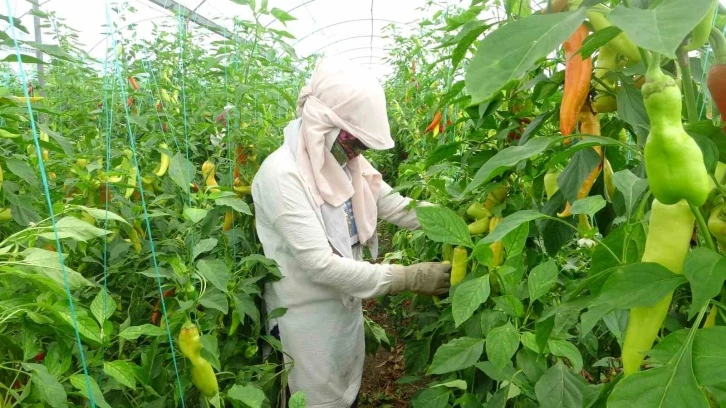 Mersin’de yaz sıcakları etkisini sürdürürken, serada çalışan işçiler kimi zaman 50 dereceye varan sıcaklık altında biber hasat ediyor.