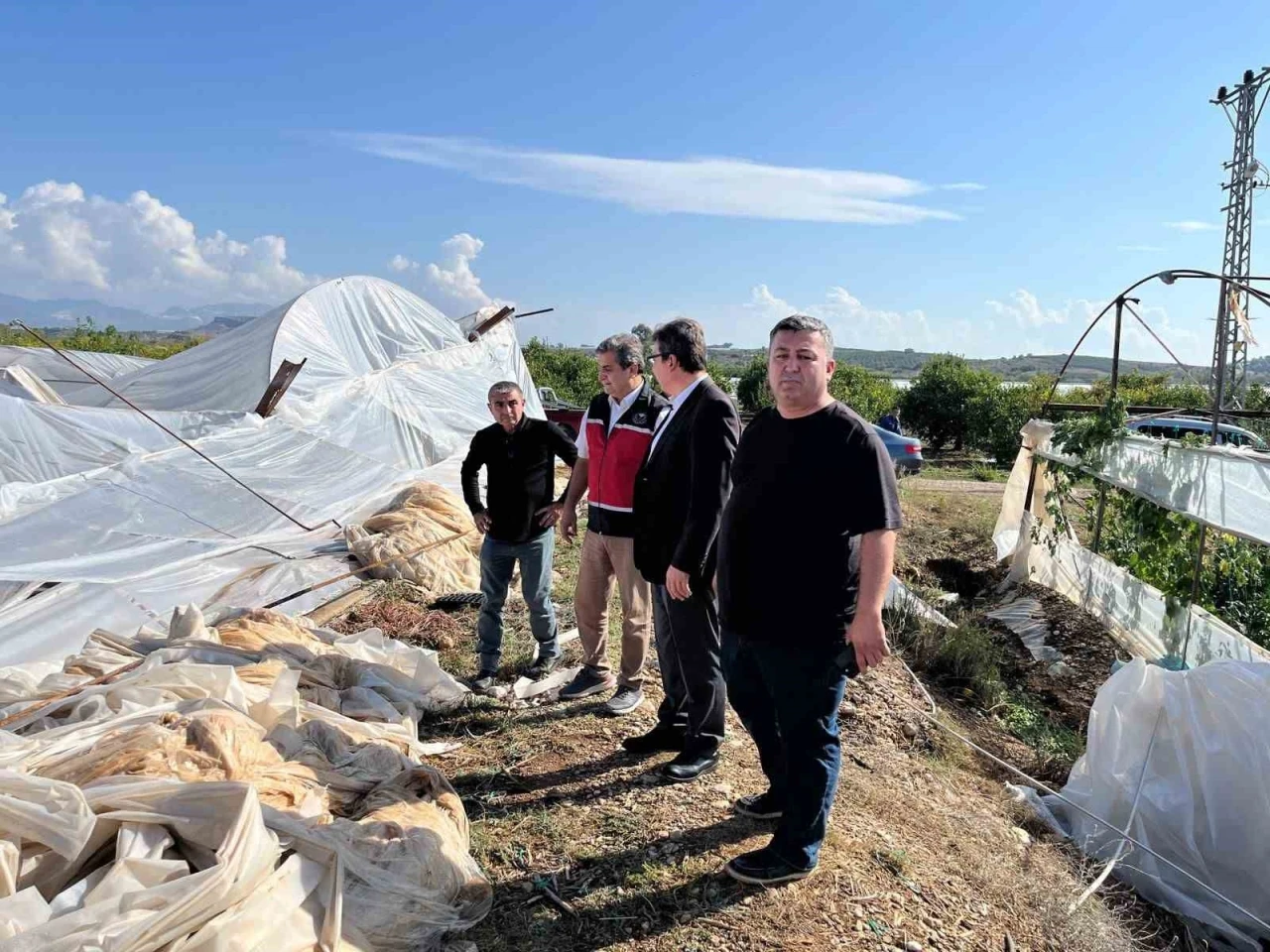Çömezoğlu, "Fırtına nedeniyle kapalı ortam seralarda çatı çökmeleri, örtü malzemelerinde yırtılmalar ve sera içerisindeki ürünlerde zararlar meydana geldi. Sayın Kaymakamımız Dr. Cemal Şahin ile birlikte afetin yaşandığı bölgeye gelerek çiftçilerimize geçmiş olsun dileklerimizi ilettik. 24 Ekim 2025 tarihi itibarıyla tespit komisyonumuzca 3 araçlı ekip görevlendirilmiş olup, söz konusu mahallelerde tespit çalışmalarına başlanmıştır" dedi. Ayrıca TARSİM Bölge Müdürlüğü ile yapılan görüşmeler sonucunda, TARSİM sigortalı 85 vatandaşın afet ihbarında bulunduğu öğrenildi. TARSİM ekspertiz ekiplerinin de bölgeye gelerek çalışmalarına başladığı bildirildi.