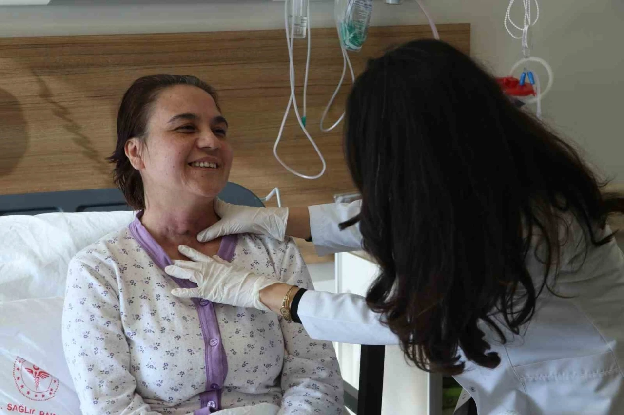 Eskişehir’de yaşamını sürdüren Nuran Yılmaz, tiroit bezi rahatsızlığı nedeniyle Eskişehir Şehir Hastanesi’ne müracaat etti. Yapılan guatr ameliyatının ardından gelişen boyun enfeksiyonu sonucunda Yılmaz’ın soluk borusunda nefes alıp vermesini zorlaştıran bir delik oluştu. Bu süreçte konuşma kabiliyetini kaybeden 2 kız annesi, yoğun bakımda günlerce makineye bağlı kaldı. Eskişehir Şehir Hastanesi Palyatif Bakım Merkezi ve Kulak Burun Boğaz (KBB) servisinde gördüğü başarılı tedaviden 2,5 ay sonra tekrar konuşabilmeye başlayan Nuran Yılmaz, geçirdiği zor günlerin ardından sesine geri kavuştu. Artık kendini çok iyi hissettiğini dile getiren Yılmaz, tedavi sürecinde emeği geçen ekibe teşekkürlerini iletti. "Yoğun bakımda da 15-20 gün kadar uzun bir süreci var"