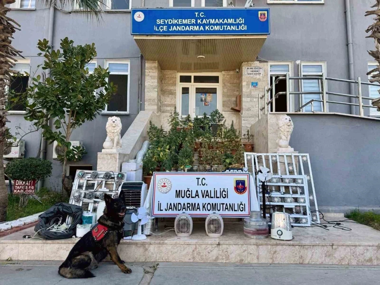 Muğla, Seydikemer İlçesi Ortaköy Mahallesinde ikamet eden Ü.A. isimli şahsın ikametinde İl Jandarma Komutanlığı ekipleri tarafından uyuşturucu madde arama köpeği ‘Misket’ ile birlikte arama yapıldı.